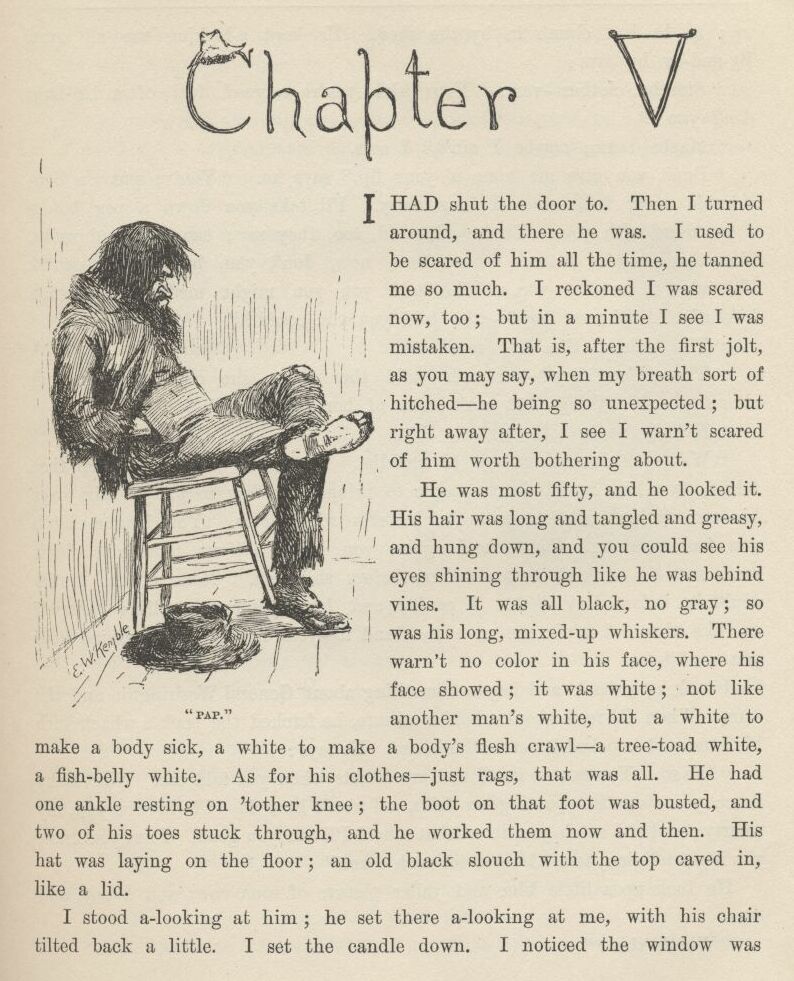 | Huckleberry Finns Abenteuer und Fahrten | 1897 | Schroedter, Hans | 5 | 5 | 2 | Huck's Father Walking | -papfinn -4p+ -drawing | hf_1897_schr_ch005_ill2 |