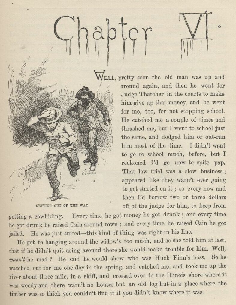 | Huckleberry Finns Abenteuer und Fahrten | 1897 | Schroedter, Hans | 6 | 6 | 1 | Abducted | -huck -papfinn -2p -drawing | hf_1897_schr_ch006_ill1 |