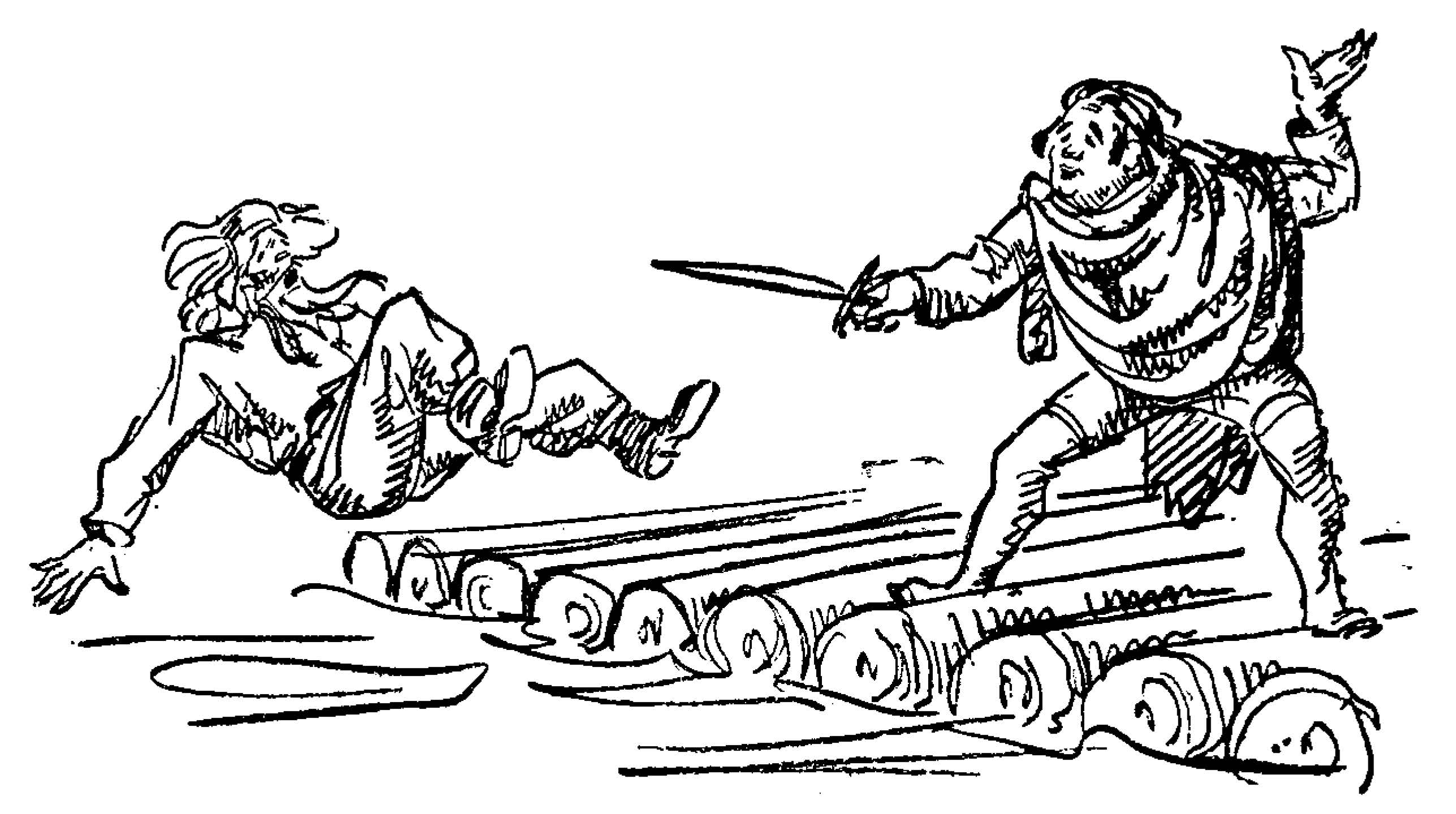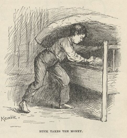 | Huckleberry Finns Abenteuer und Fahrten | 1897 | Schroedter, Hans | 25 | 19 | 1 | Counting Coins | -huck -duke -king -3p -grayscale | hf_1897_schr_ch025_ill1 |