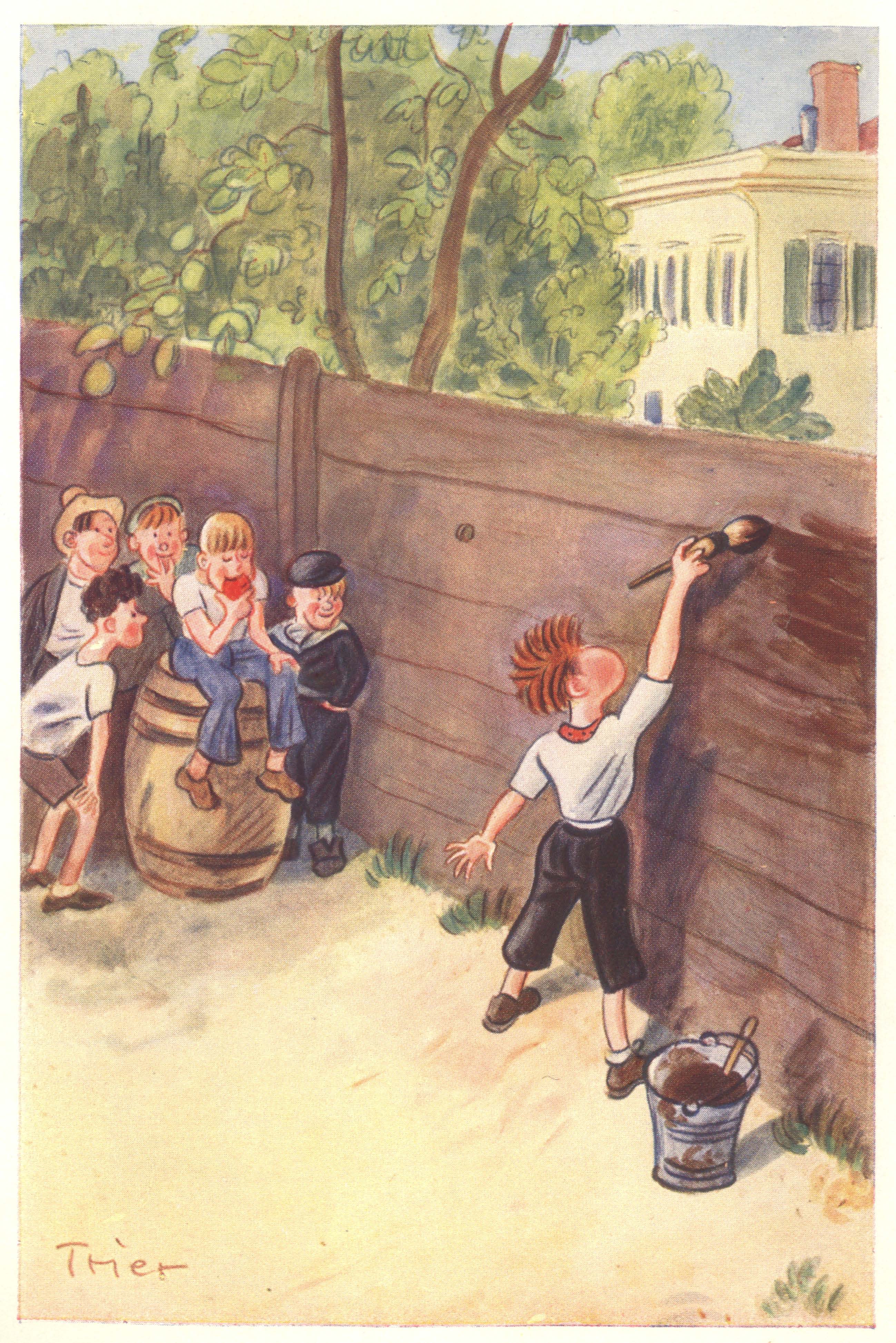 | Die Abenteuer des Tom Sawyer und Huckleberry Finn | 1936 | Trier, Walter | 33 | 28 | 1 | It Was Tom Sawyer | -huck -tom -3p -color -animal | hf_1936_tri_ch033_ill1 |