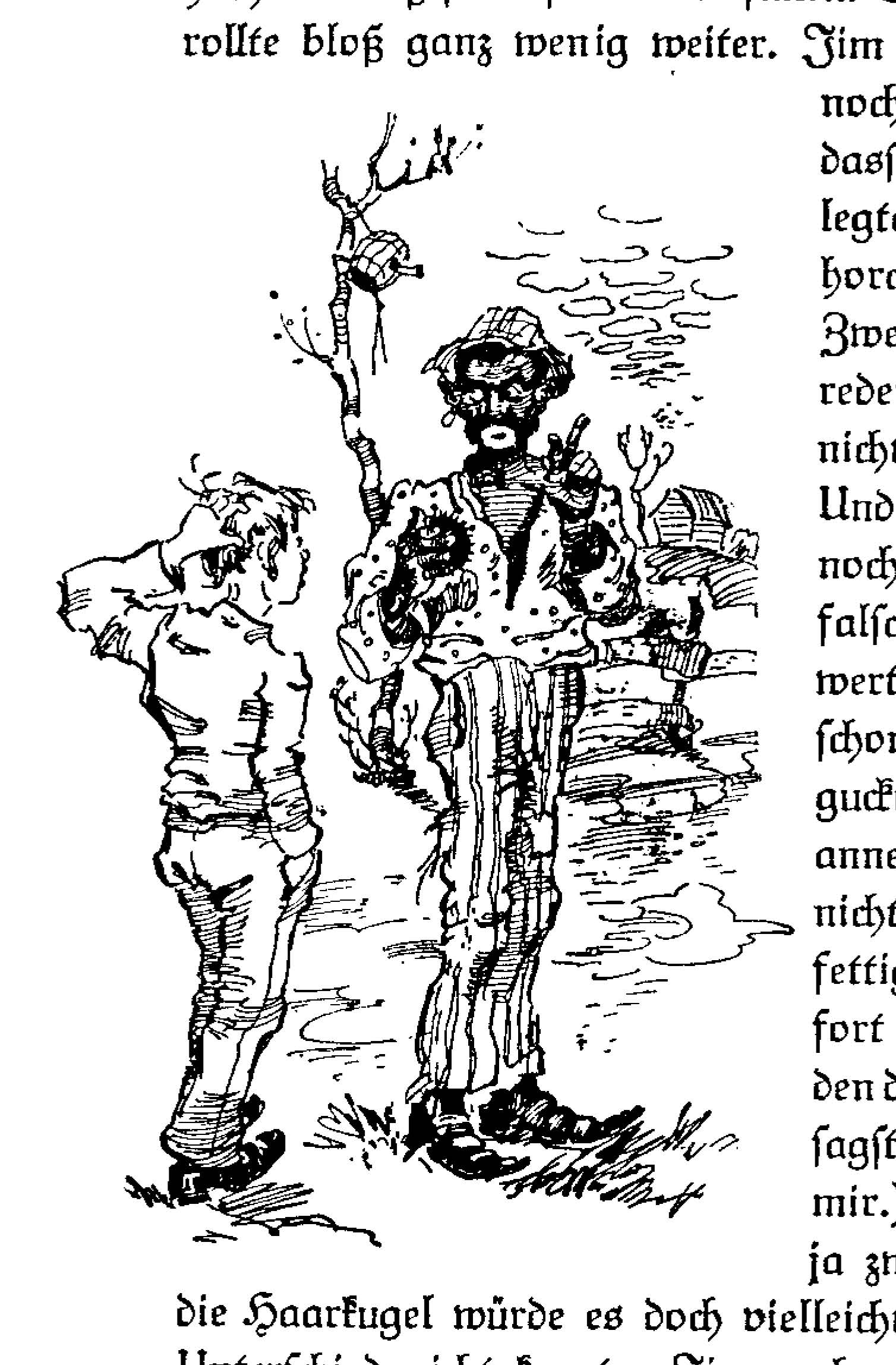 | Huckleberry Finns Abenteuer und Fahrten | 1897 | Schroedter, Hans | 4 | 4 | 2 | Hair Ball Oracle | -huck -jim -2p -drawing | hf_1897_schr_ch004_ill2 |