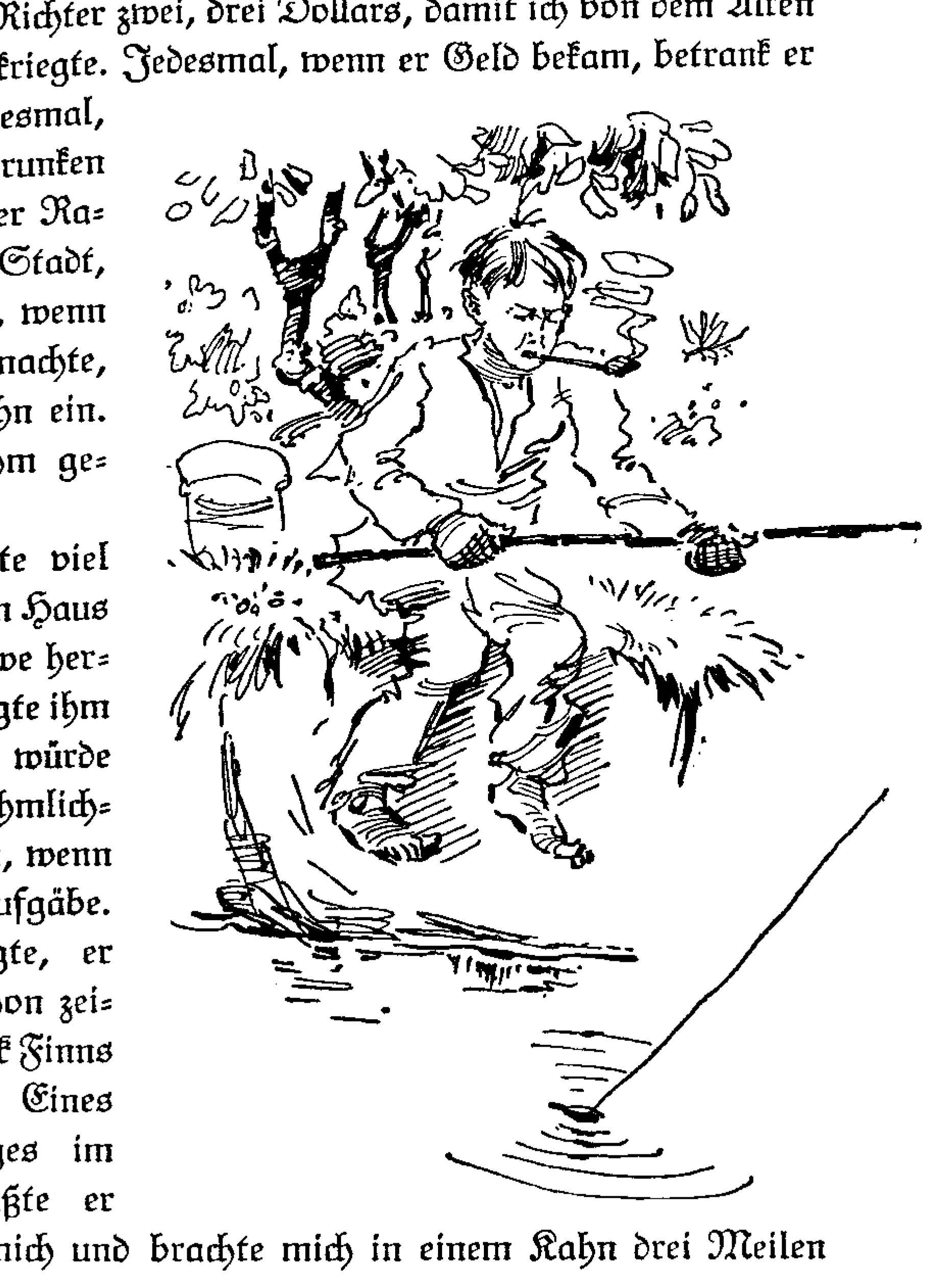 | Huckleberry Finns Abenteuer und Fahrten | 1897 | Schroedter, Hans | 5 | 5 | 1 | Pap | -papfinn -1p -drawing | hf_1897_schr_ch005_ill1 |