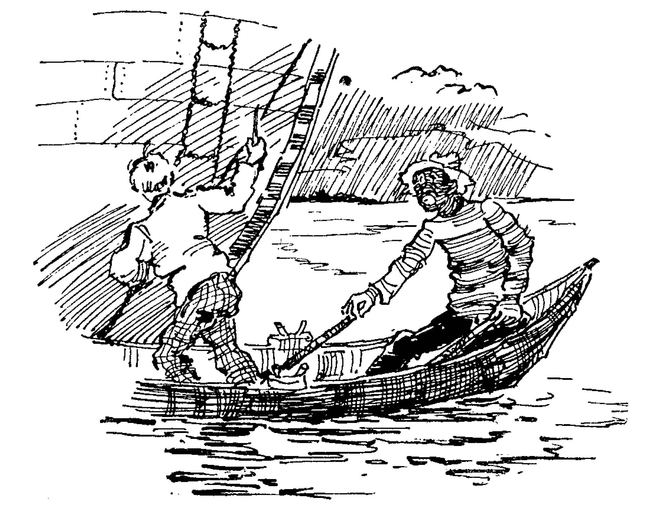 | Huckleberry Finns Abenteuer und Fahrten | 1897 | Schroedter, Hans | 9 | 9 | 2 | Pulling Their Raft | -huck -jim -2p -boat -drawing | hf_1897_schr_ch009_ill2 |