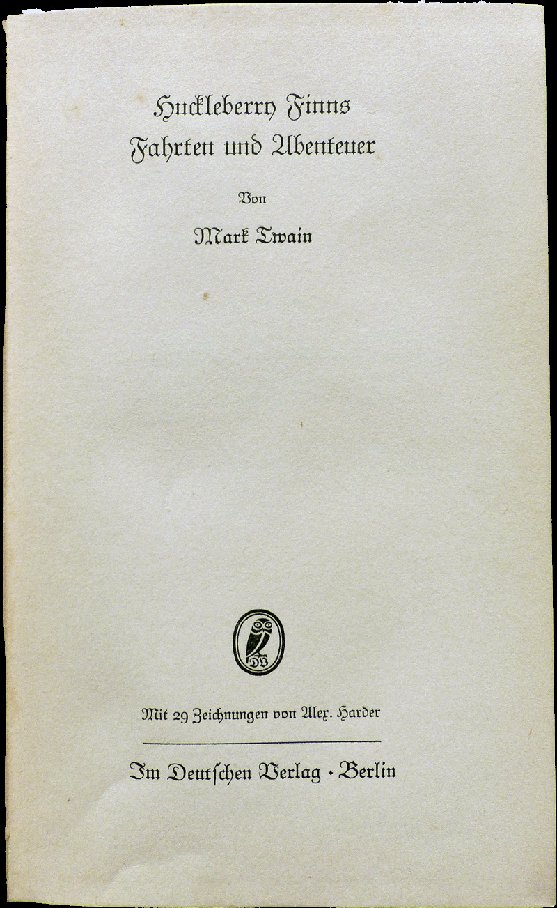 | Die Abenteuer des Huckleberry Finn | 1920 | Hirth, Edouard | 440 | 440 | 0 | Cover (and Title Page) | hf_1920_hir_cover | |
