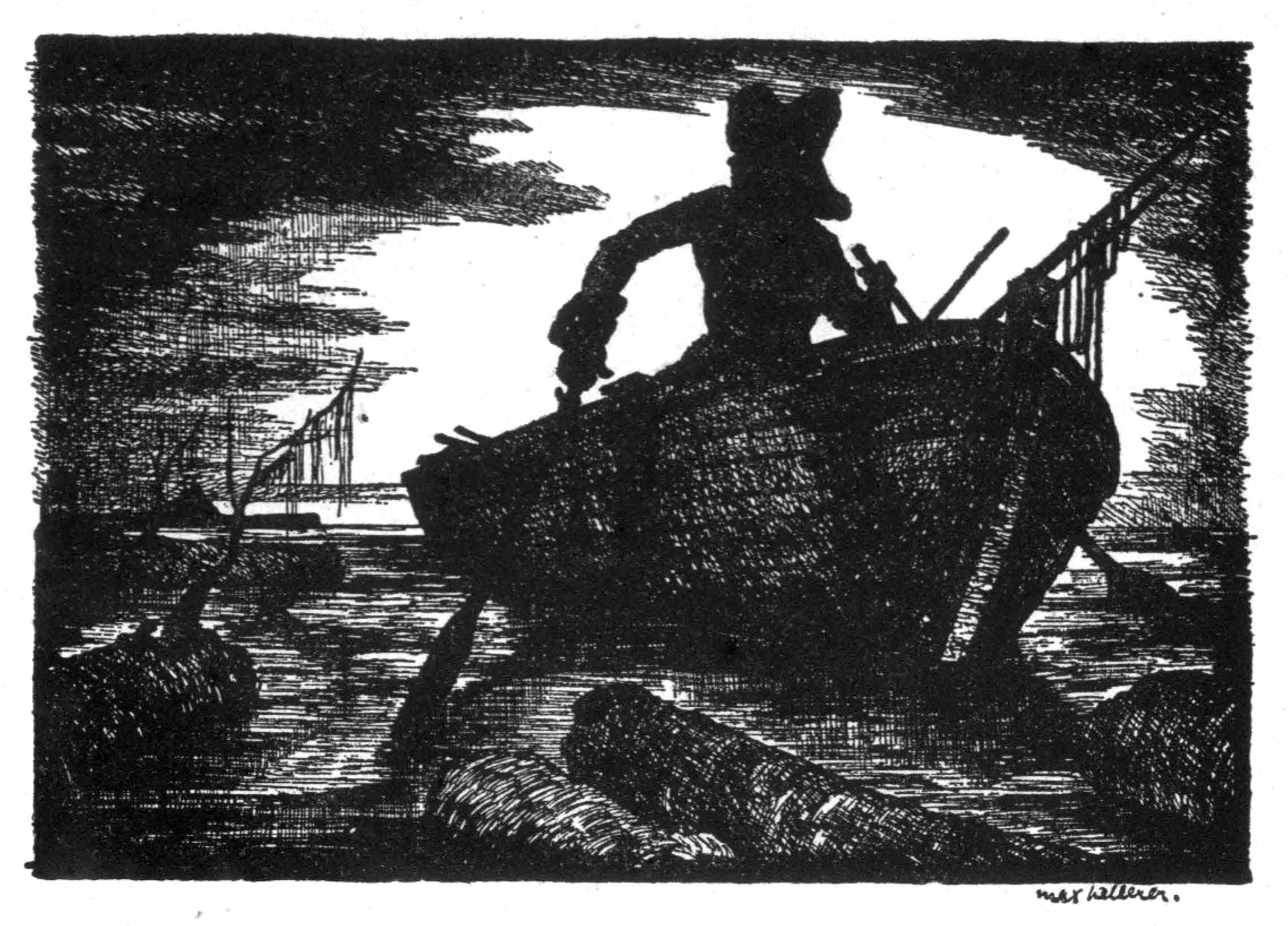 | Die Abenteuer des Tom Sawyer und Huckleberry Finn | 1936 | Trier, Walter | 7 | 7 | 1 | Taking a Rest | -huck -1p -boat -drawing | hf_1936_tri_ch007_ill1 |
