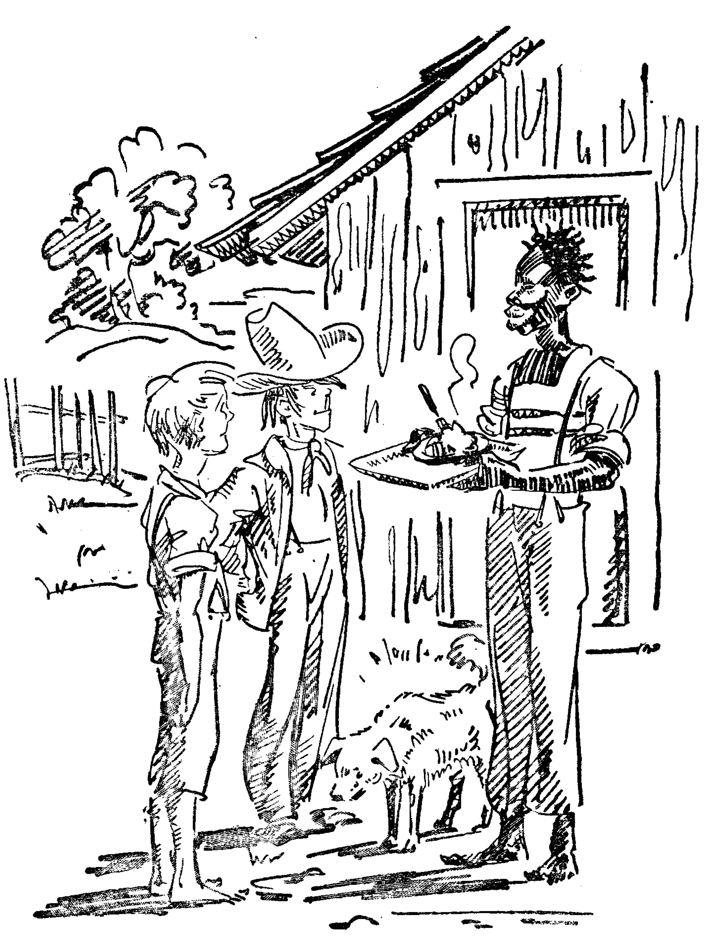 | Die Abenteuer des Tom Sawyer und Huckleberry Finn | 1936 | Trier, Walter | 8 | 8 | 1 | Cooking | -huck -2p -jim -drawing -animal | hf_1936_tri_ch008_ill1 |