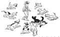 In 1936 Die Abenteuer des Tom Sawyer und Huckleberry Finn was published by Williams in Berlin. As indicated by the title, this edition contains two novels in one: The Adventures of Tom Sawyer as well as Adventures of Huckleberry Finn. Walter Trier (* 1890, † 1951) created a plethora of illustrations for this double edition. Of those images, 34 (including the titlepage) are dedicated to Adventures of Huckleberry Finn.