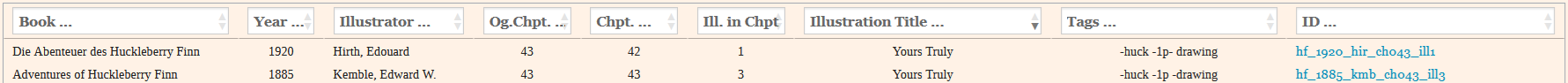 ID - For structuring purposes, each image was assigned a shorthand ID consisting of the illustrators name, the year, the chapter and the illustration number. (see: IDs)